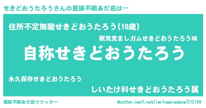 | 女子向けラノベタイトル風あだ名 | 『せきどおうたろうなんてお断りですっ。』 |
