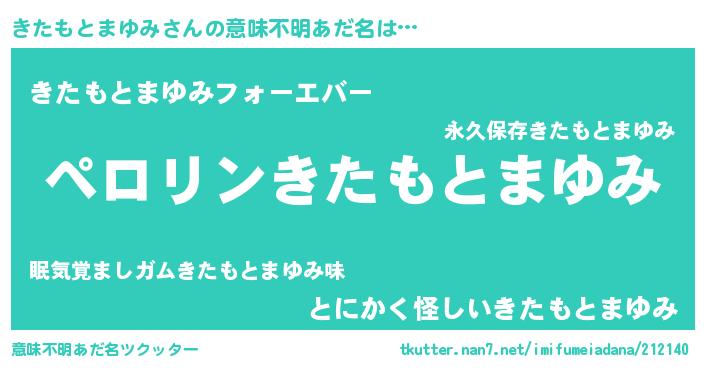 | ヒーロー風カッコイイあだ名 | 『スーパーキタモトマユミ』 |