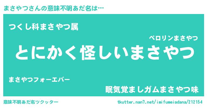 | 胡散臭い通販商品みたいなあだ名 | 『全米が絶賛したサプリメント…その名も「まさやつ」』 |