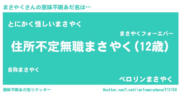 | 男性向けラノベタイトル風あだ名 | 『魔弾の王とまさやく』『まさやくの憂鬱』 |