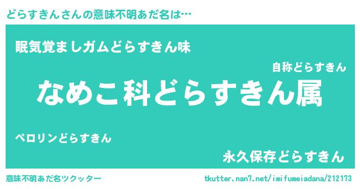 | ヘコむあだ名 | 『どらすきん(笑)』『どらにー』 |