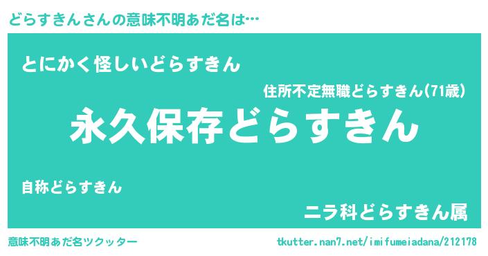 | ヘコむあだ名 | 『どらすきん(爆)』『どらっ子』 |