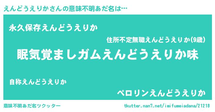 | 胡散臭い通販商品みたいなあだ名 | 『お金では代えられないイリジウム磁石…その名も「えんどうえりか」』 |