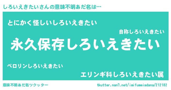 | 男性向けラノベタイトル風あだ名 | 『しろいえきたいという概念が存在しない退屈な世界 』 |