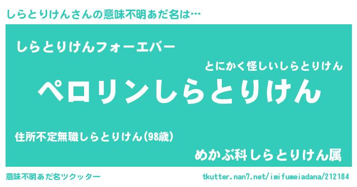 | 胡散臭い通販商品みたいなあだ名 | 『億万長者になれるブレスレット…その名も「しらとりけん」』 |