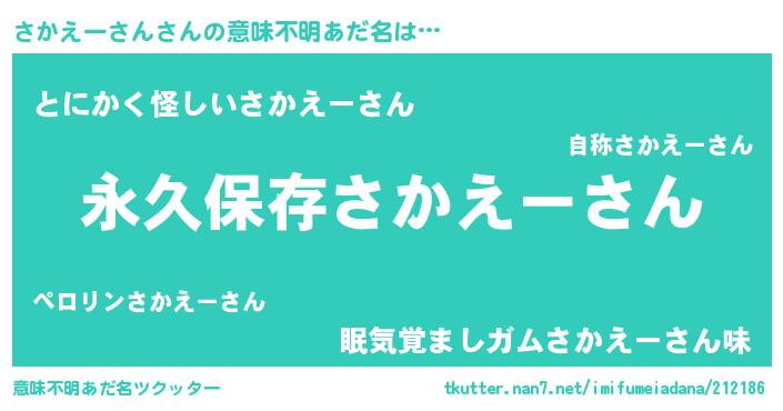 | 胡散臭い通販商品みたいなあだ名 | 『来世でも幸せになれる健康食品…その名も「さかえーさん」』 |