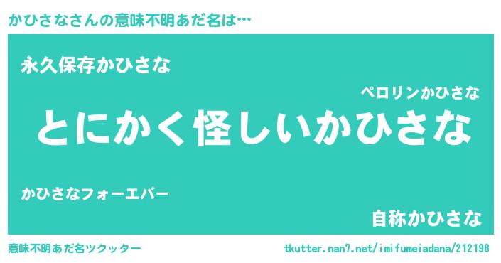 | 女子向けラノベタイトル風あだ名 | 『かひさなの卵を拾いまして』 |