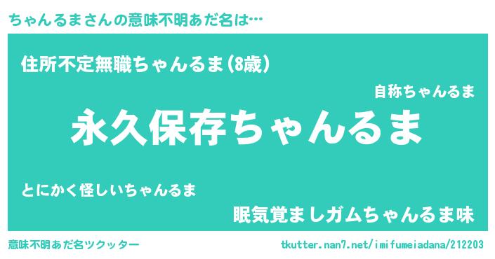 | ヘコむあだ名 | 『ちゃんるま(笑)』『ちゃを』 |