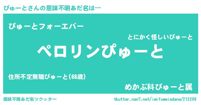 | 男性向けラノベタイトル風あだ名 | 『ぴゅーとの憂鬱』『ピュートスレイヤー』 |