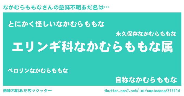 | ヘコむあだ名 | 『なか太郎』『なかむらももな(小並感)』 |