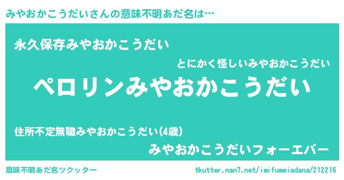 | 胡散臭い通販商品みたいなあだ名 | 『モテモテ間違いなし霊験あらたかなお札…その名も「みやおかこうだい」』 |