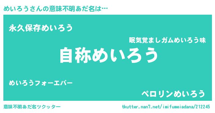 | 恥ずかしいあだ名 | 『メイロウデラックス』『めいちん』 |