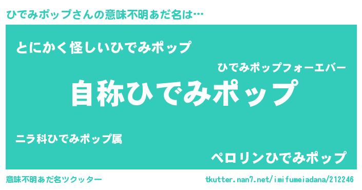 | 男性向けラノベタイトル風あだ名 | 『Re:ひでみポップから始める異世界生活』 |
