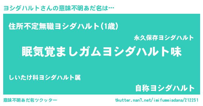 | ヘコむあだ名 | 『ヨシダハルト(笑)』『ヨシにー』 |