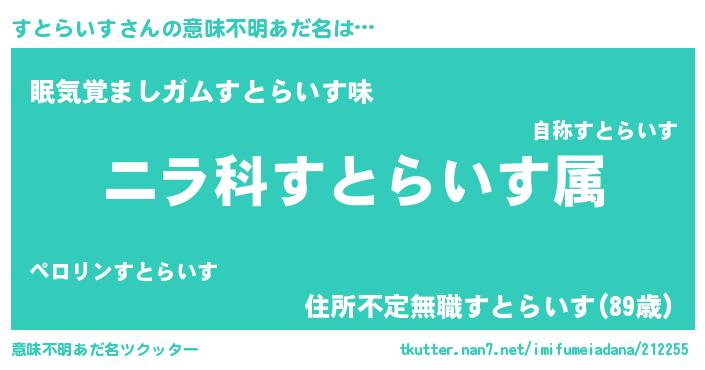 | ヘコむあだ名 | 『すとっふぃ~』『すとらいす(小並感)』 |