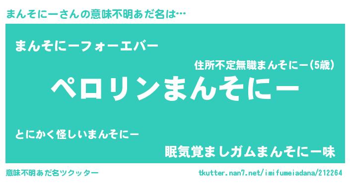 | 男性向けラノベタイトル風あだ名 | 『マンソニーアートオンライン』 |