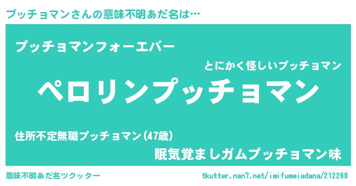 | ピコ太郎風あだ名 | 『プコ三郎』『ピプ四郎』『ププ太郎』 |