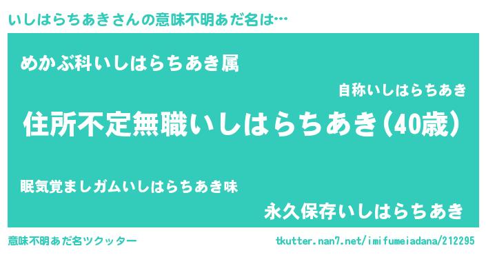 | ヘコむあだ名 | 『いしはらちあき(笑)』『いしもー』 |