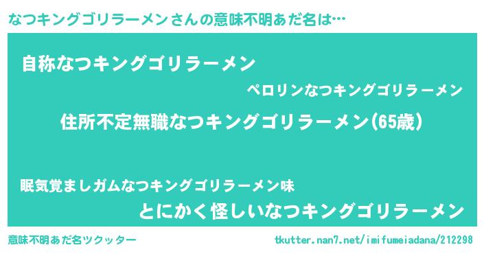 | 欧米人風あだ名 | 『ダレノガレなつキングゴリラーメン』 |