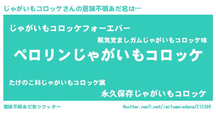 | 男性向けラノベタイトル風あだ名 | 『じゃがいもコロッケの憂鬱』 |