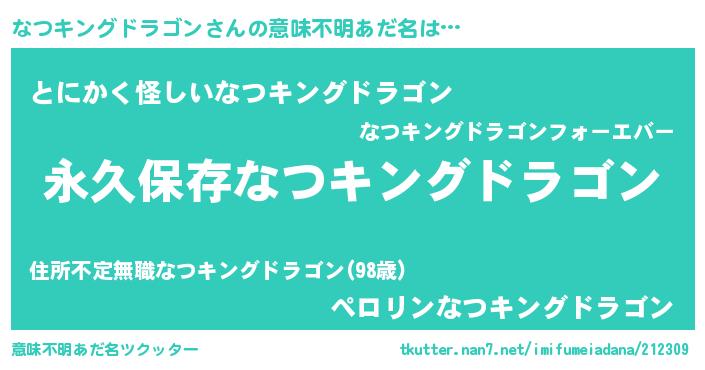 | 伝説のあだ名 | 『古文書に記された勇者なつキングドラゴン』 |