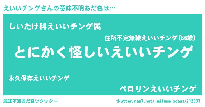 | 女子向けラノベタイトル風あだ名 | 『えいいチンゲは平凡を望む』 |