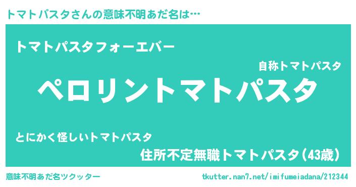 | 欧米人風あだ名 | 『マイケルトマトパスタ』 |