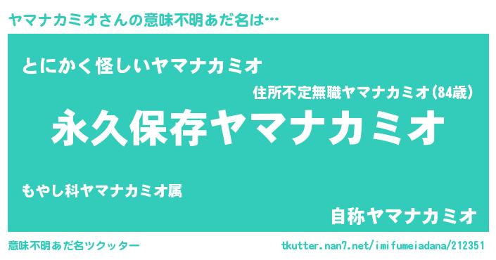 | ヒーロー風カッコイイあだ名 | 『ネオヤマナカミオ』『魔戒騎士ヤマ』 |