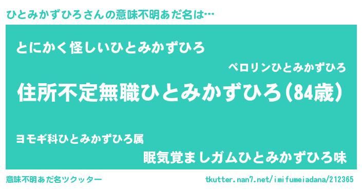 | 料理風あだ名 | 『ひとみかずひろのカルパッチョ風』 |