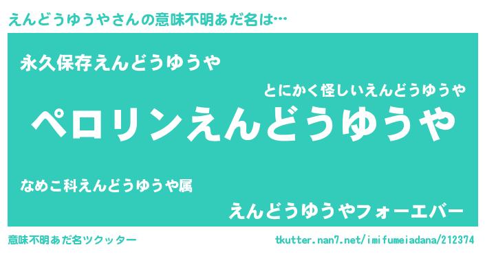 | 欧米人風あだ名 | 『えんどうゆうや・ステッグマイヤー』 |