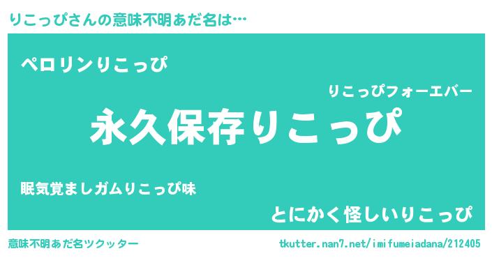 | 男性向けラノベタイトル風あだ名 | 『りこっぴという概念が存在しない退屈な世界 』 |