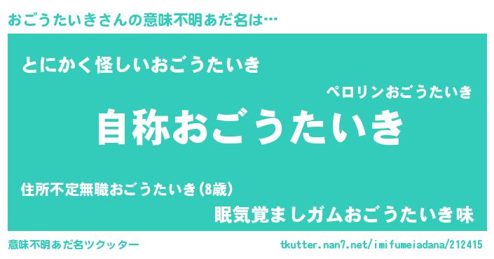 | 欧米人風あだ名 | 『アンジェラ・おごうたいき』 |