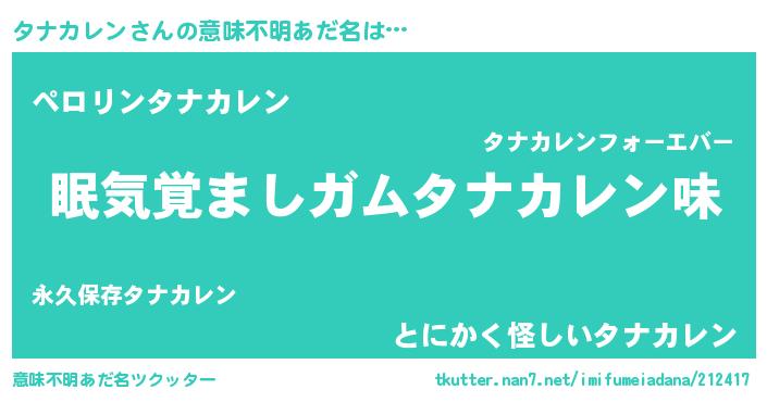 | ヘコむあだ名 | 『タナもー』『タナお』『なまこ酢』 |