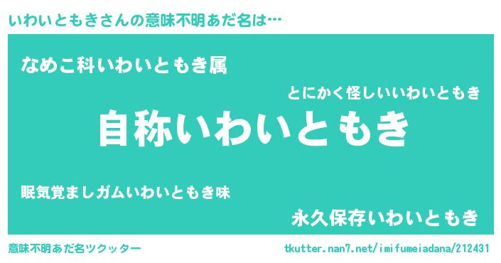 | 肩書あだ名 | 『いわいともき艦長』『いわいともき総統』 |