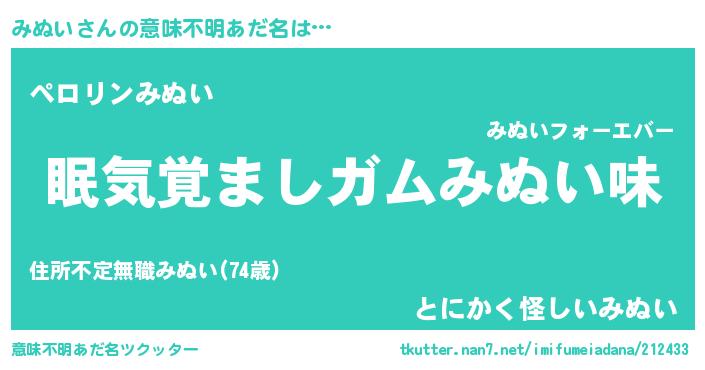 | ヘコむあだ名 | 『みぬふぇ~』『みぬ太郎』『つくし』 |