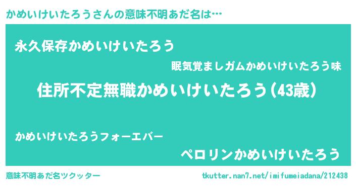 | 女子向けラノベタイトル風あだ名 | 『乙女ゲームの破滅フラグしかない悪役かめいけいたろうに転生してしまった…』 |