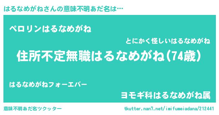 | 男性向けラノベタイトル風あだ名 | 『この素晴らしい世界にはるなめがねを!』 |
