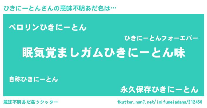 | ヘコむあだ名 | 『ひきにゅー』『ひきにーとん(笑)』 |