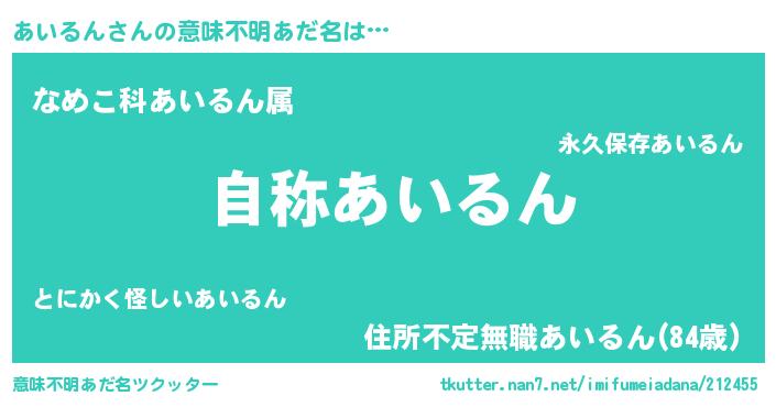 | 女子向けラノベタイトル風あだ名 | 『闇のあいるん』『あいるん様がみてる』 |