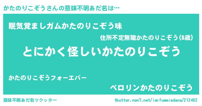 | 女子向けラノベタイトル風あだ名 | 『かたのりこぞうの卵を拾いまして』 |