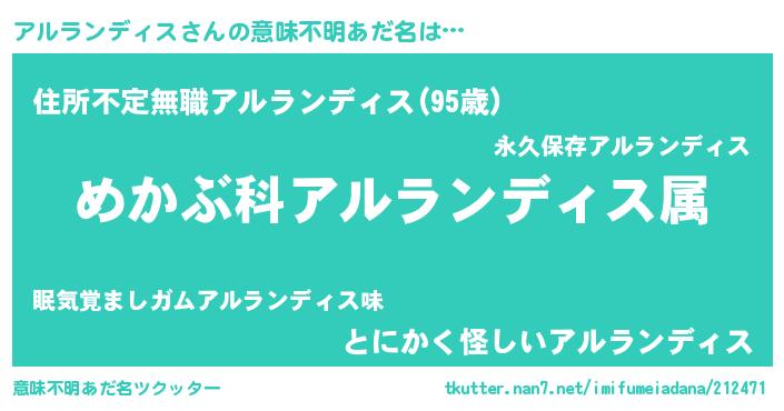 | 男性向けラノベタイトル風あだ名 | 『緋弾のアルランディス』 |