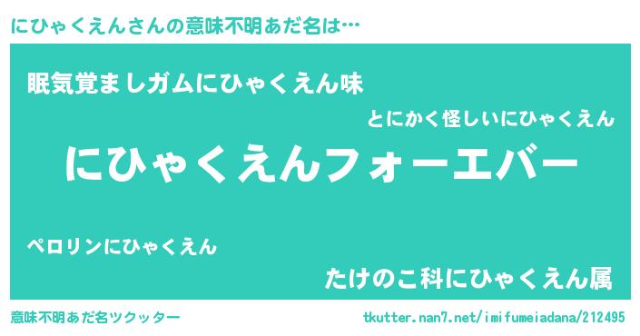 | ファンタジー風あだ名 | 『エターナルニヒャクエンー』 |