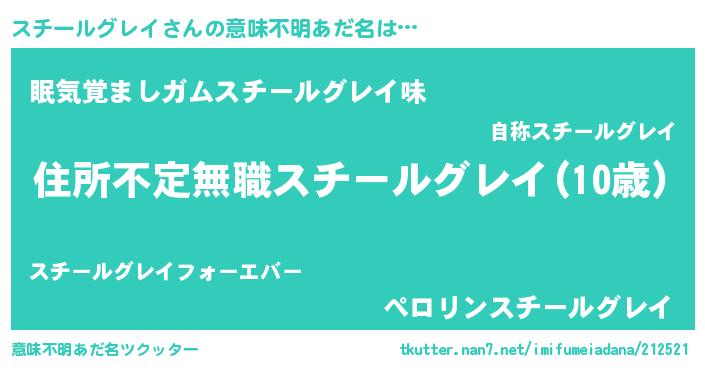| 胡散臭い通販商品みたいなあだ名 | 『あなたにだけ特別に提供する100年もののヴィンテージワイン…その名も「スチールグレイ」』 |