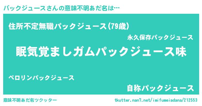 | 男性向けラノベタイトル風あだ名 | 『ノーゲーム・ノーパックジュース』 |