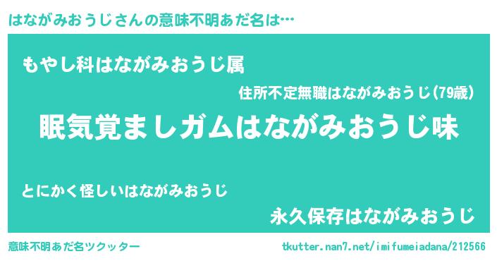 | 男性向けラノベタイトル風あだ名 | 『ノーゲーム・ノーハナガミオウジ』 |