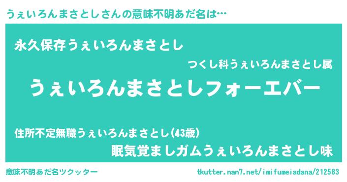 | 欧米人風あだ名 | 『うぇいろんまさとしクリステル』 |