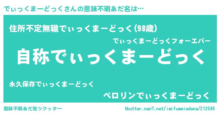 | 女子向けラノベタイトル風あだ名 | 『でぃっくまーどっくなんてお断りですっ。』 |