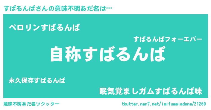 | 男性向けラノベタイトル風あだ名 | 『Re:すばるんばから始める異世界生活』 |