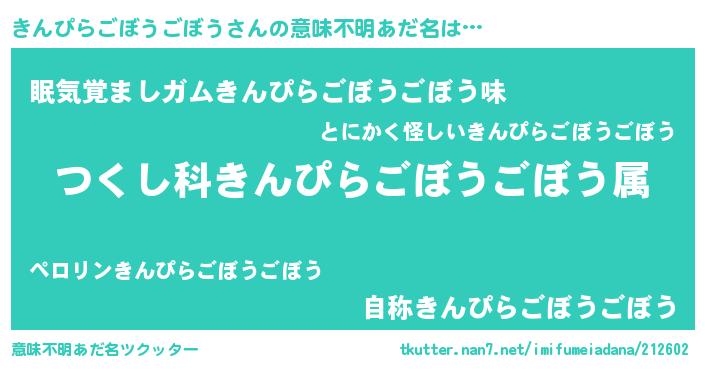 | ヒーロー風カッコイイあだ名 | 『慈愛の使者きんぴらごぼうごぼう』 |