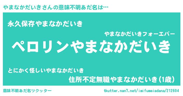 | 欧米人風あだ名 | 『マイケルやまなかだいき』 |